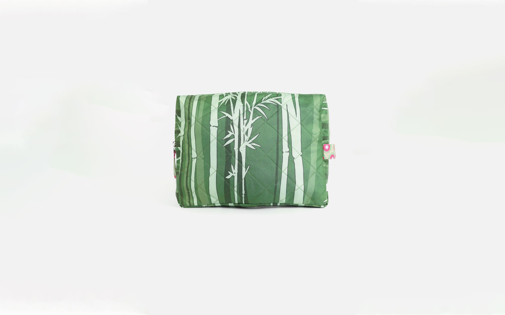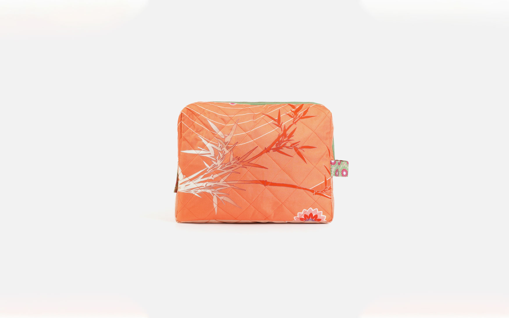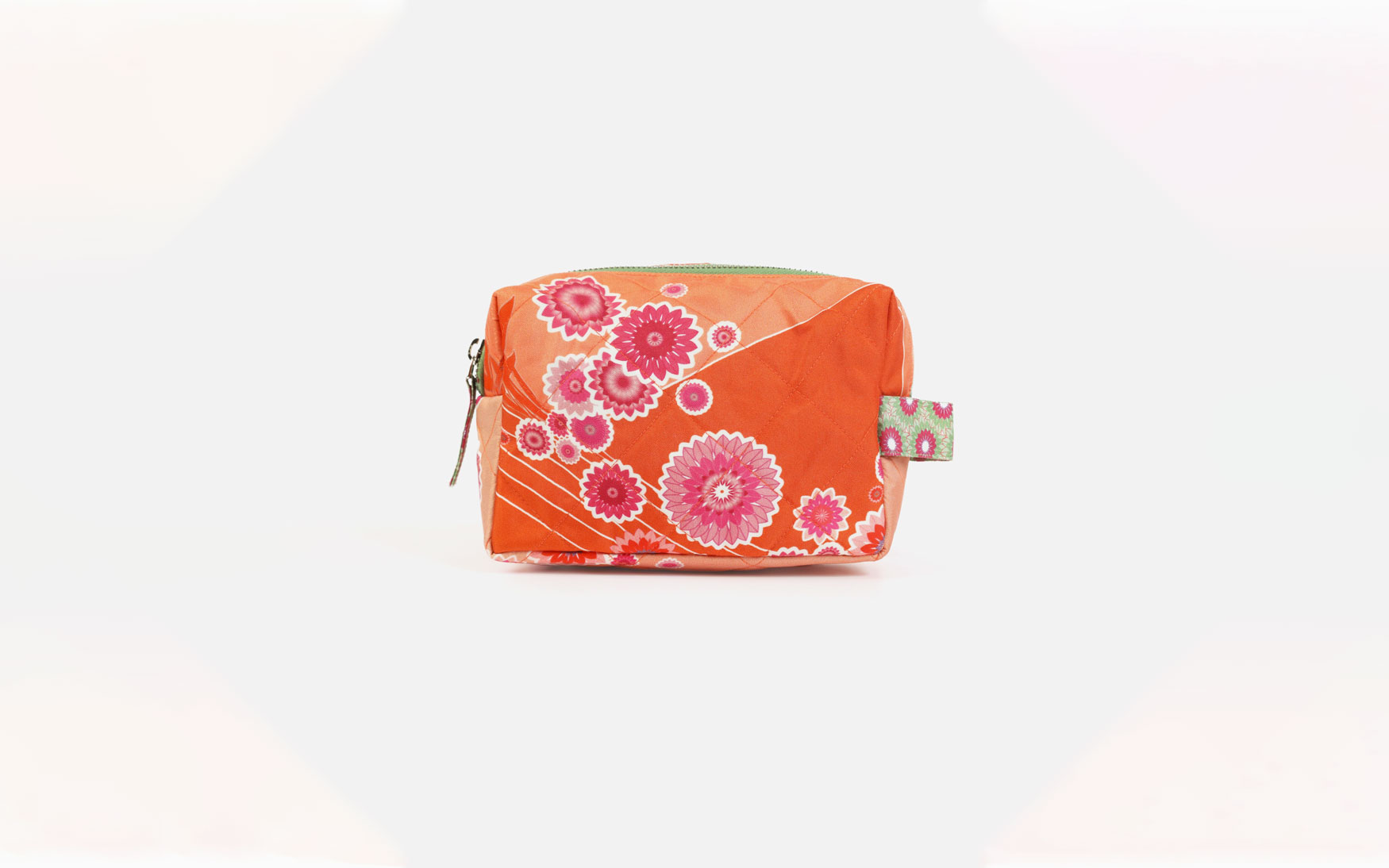Stay organized on the go with this cute and stylish floral quilted pure silk cosmetic pouch.